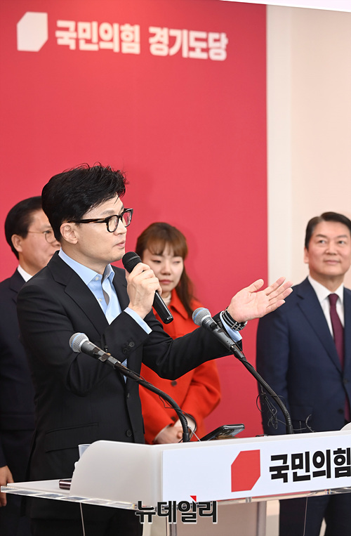 한동훈 국민의힘 비상대책위원장이 5일 오후 국민의힘 경기도당에서 열린 신년인사회에서 격려사를 하고 있다. (경기 수원=서성진 기자)