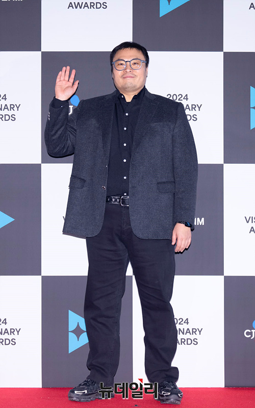 만화가 강풀이 7일 오후 서울 마포구 CJ ENM 센터에서 열린 '2024 비저너리 어워즈' 레드카펫에서 포즈를 취하고 있다.