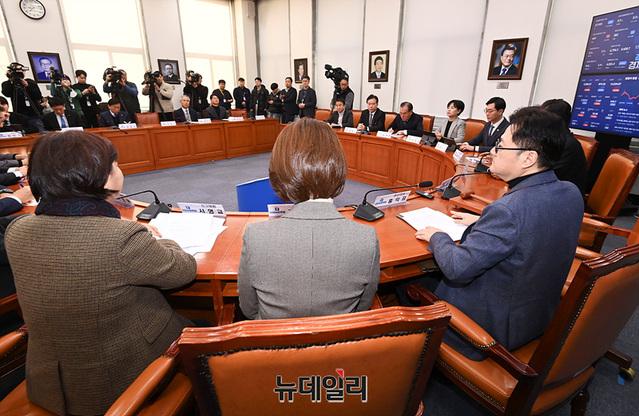 이재명 더불어민주당 대표가 흉기 피습사건으로 공석인 가운데 8일 오전 국회에서 홍익표 원내대표가 최고위원회의를 주재하고 있다.