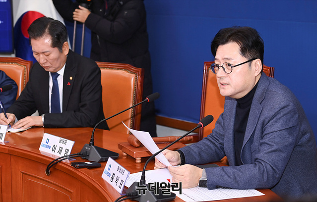 [포토] 이재명 공석, 최고위원회의 주재하는 홍익표 원내대표