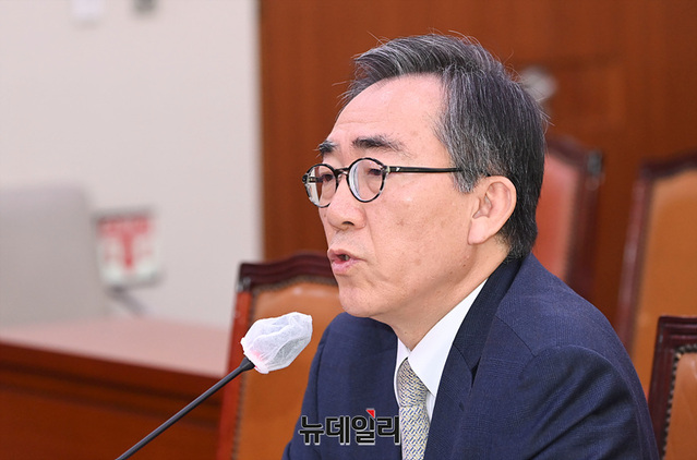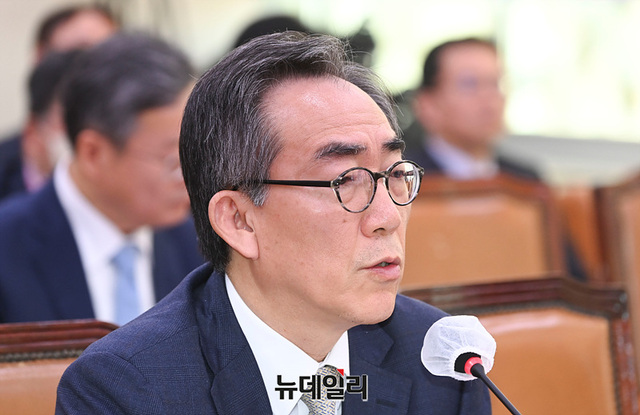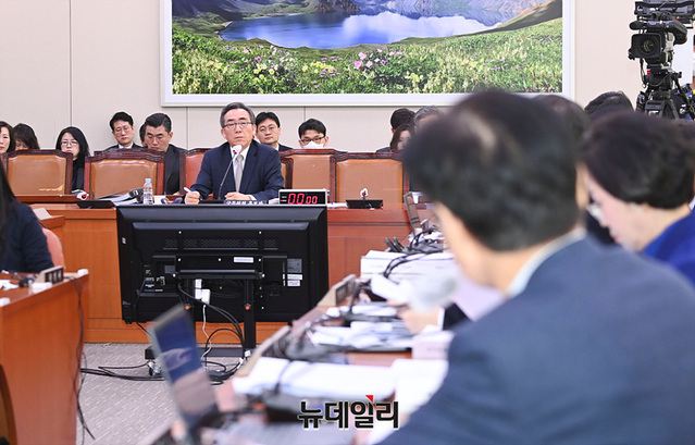 조태열 외교부 장관 후보자가 8일 오전 국회에서 열린 인사청문회에서 의원들의 질의에 답하고 있다.