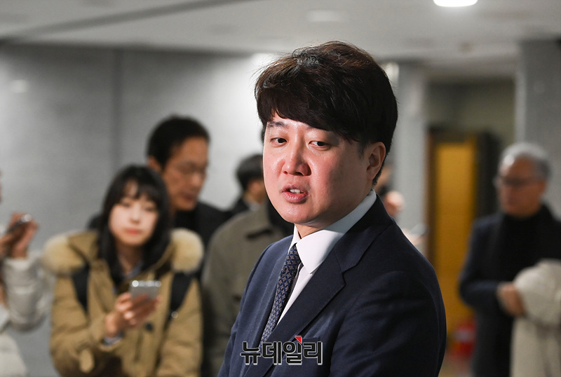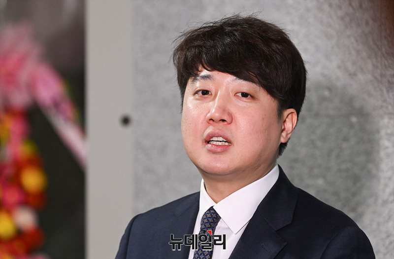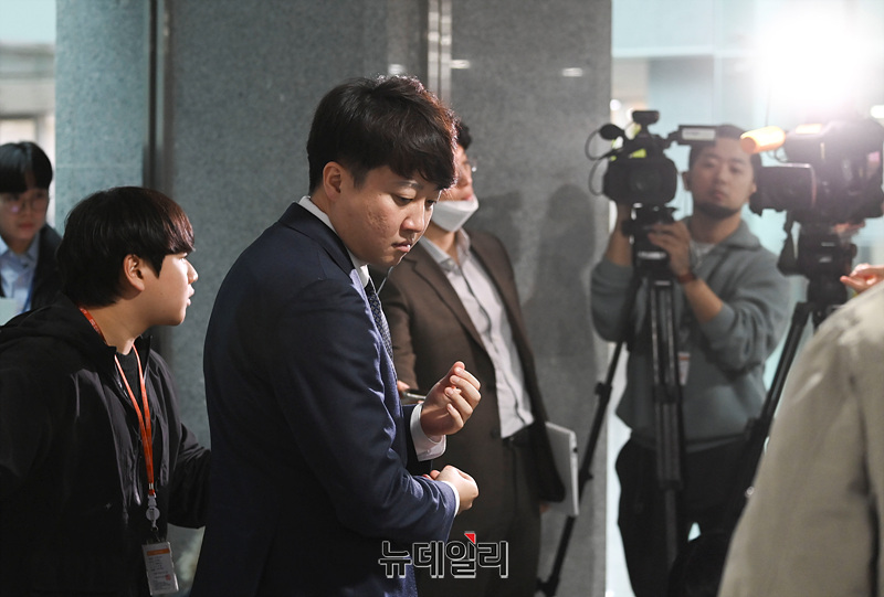 이준석 전 국민의힘 대표가 9일 오전 국회 의원회관에서 열린 양향자 한국의희망 대표 출판기념회를 나서며 취재진의 질문에 답하고 있다.