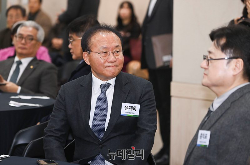 윤재옥 국민의힘 원내대표와 홍익표 더불어민주당 원내대표가 9일 오전 서울 여의도 이룸센터에서 열린 2024 장애계 신년인사회에 참석해 자리하고 있다.