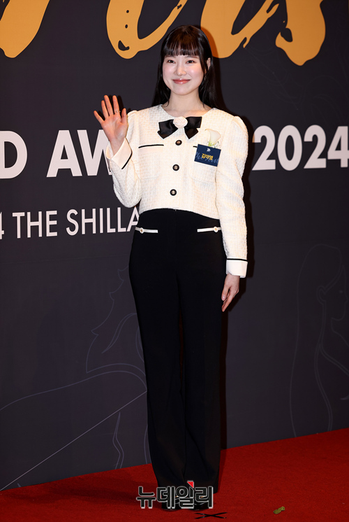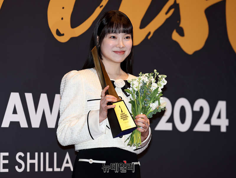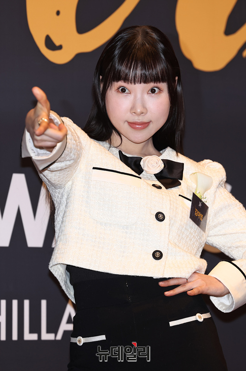 배우 김아영이 9일 오후 서울 중구 신라호텔에서 열린 '2024 대한민국 퍼스트브랜드 대상' 시상식에서 포즈를 취하고 있다.