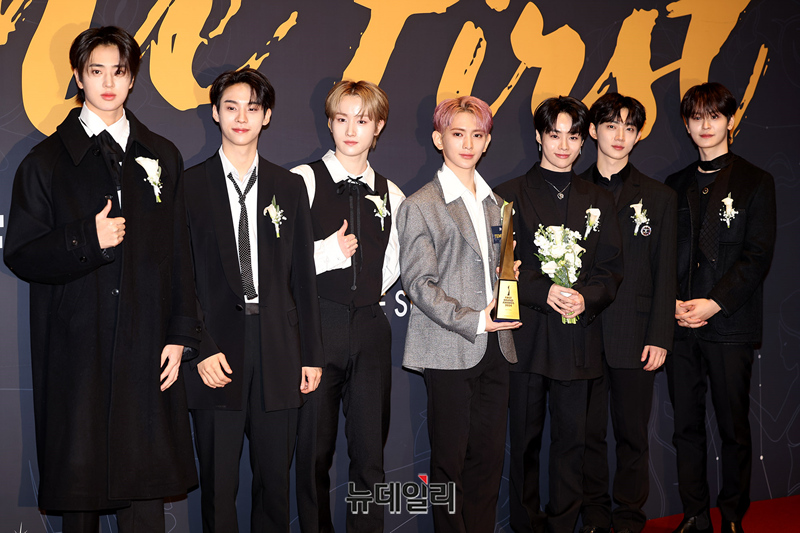 아이돌그룹 템페이스트가 9일 오후 서울 중구 신라호텔에서 열린 '2024 대한민국 퍼스트브랜드 대상' 시상식에서 포즈를 취하고 있다.