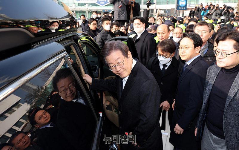 이재명 더불어민주당 대표가 지난 2일 부산에서 피습일 당한지 8일만인 10일 오전 서울 종로구 서울대학교병원에서 퇴원하며 차량에 오르고 있다. 이 대표는 자택에서 당분간 치료를 이어갈 예정이다.