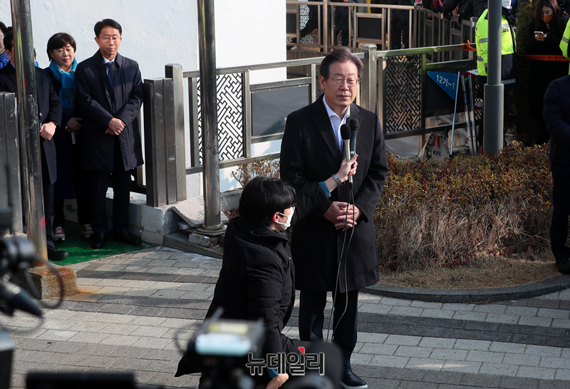 이재명 더불어민주당 대표가 10일 오전 서울 종로구 서울대학교병원에서 퇴원하며 입장을 밝히고 있다. 지난 2일 부산에서 피습당한지 8일만에 퇴원하는 이 대표는 자택에서 당분간 치료를 이어갈 예정이다.