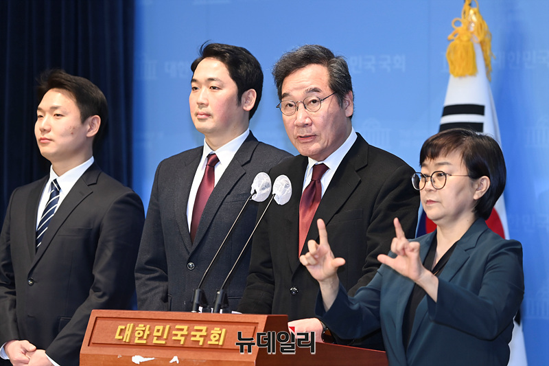 이낙연 전 더불어민주당 대표가 11일 오후 국회 소통관에서 더불어민주당 탈당 선언 기자회견을 하고 있다.