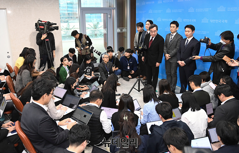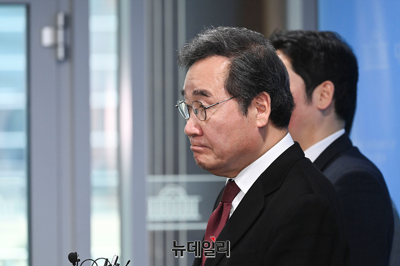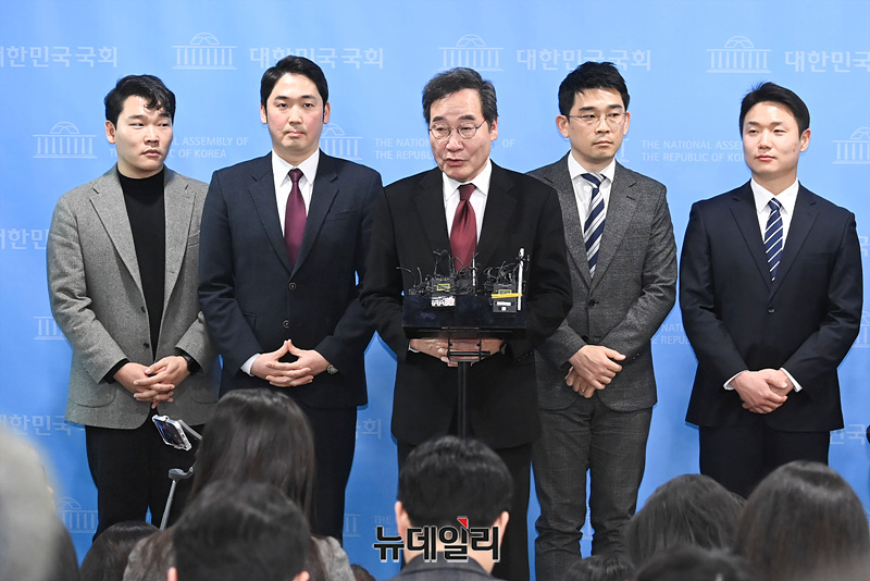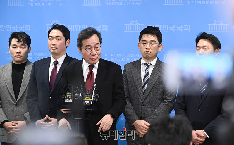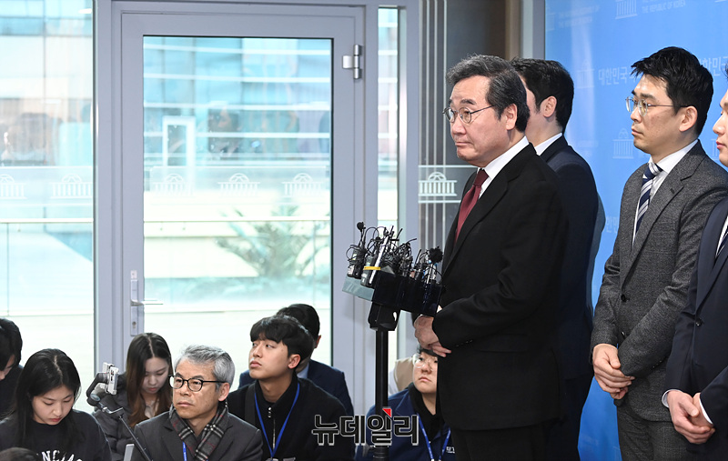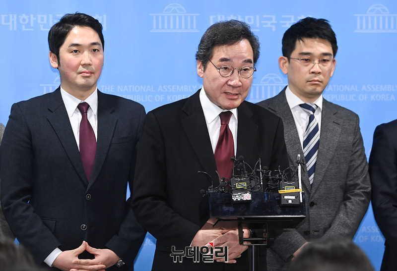 이낙연 전 더불어민주당 대표가 11일 오후 국회 소통관에서 더불어민주당 탈당 선언 기자회견을 마치고 취재진의 질문에 답하고 있다.