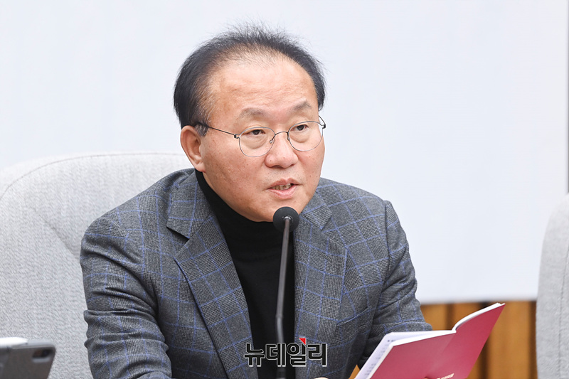 윤재옥 국민의힘 원내대표가 12일 오전 국회에서 열린 원내대책회의에서 모두발언을 하고 있다.