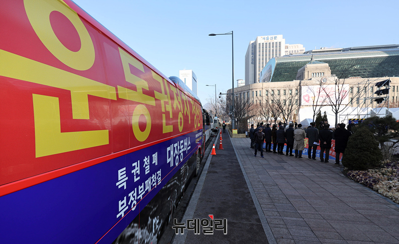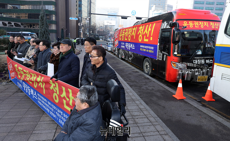 운동권 정치 청산과 정치개혁 시민행동 민심버스가 12일 오전 서울광장에서 출정식을 갖고 있다.출정식에는 최인식 대장동버스 대표와 이희범 한국NGO연합 상임대표, 김대호 사회디자인연구소장, 김준용 국민노조 사무총장 등이 참석했다.이들은 출정식에서 "우리는 운동권 출신들의 반칙과 특권을 고발하고 부패와 타락, 위선과 독선을 폭로할 것"이라며 "대한민국 역사와 체제에 대한 부정과 파괴 행위를 저지하고 언론방송을 통한 막말 테러 등 거짓과 조작에 결사항전할 것"이라고 말했다.