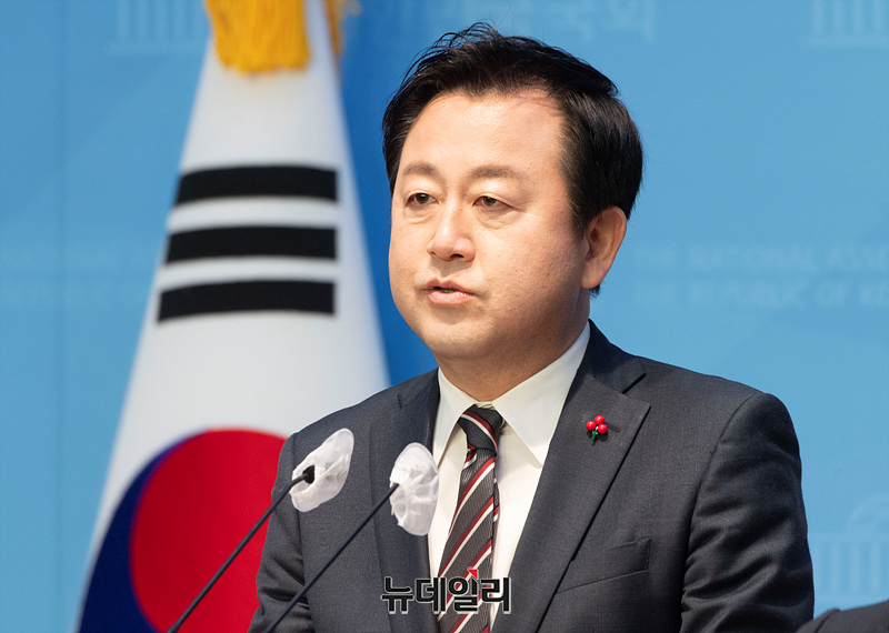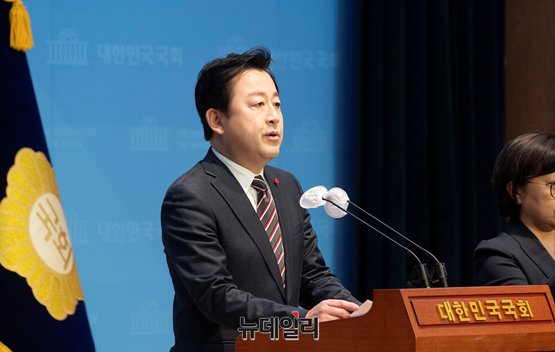 김용남 전 국민의힘 의원이 12일 오전 국회 소통관에서 국민의힘 탈당 및 개혁신당 합류 기자회견을 하고 있다.