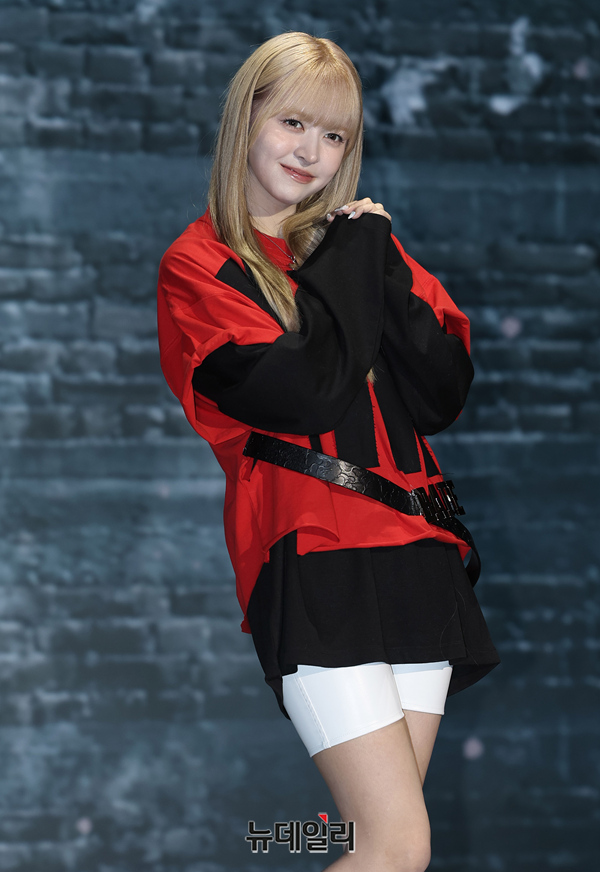 엔믹스 릴리가 15일 오후 서울 송파구 소피텔 앰배서더 서울 호텔에서 열린 2번째 미니앨범 쇼케이스에서 포즈를 취하고 있다.