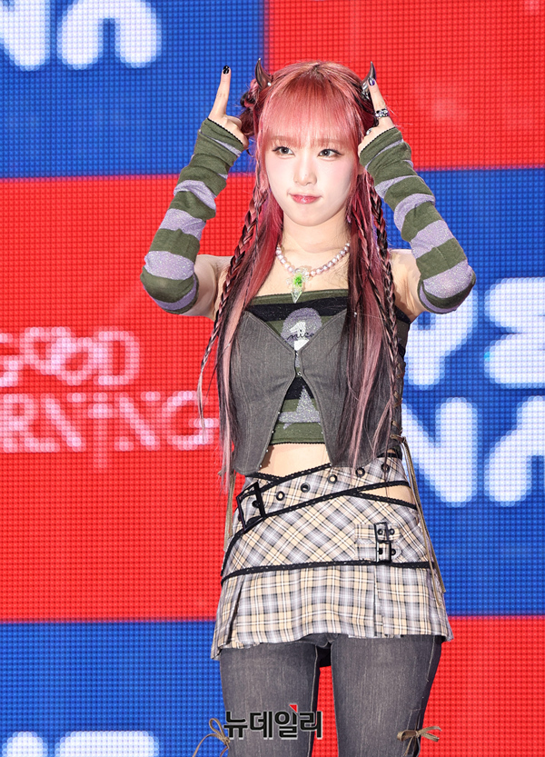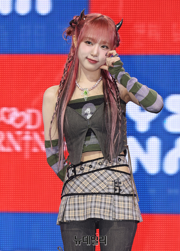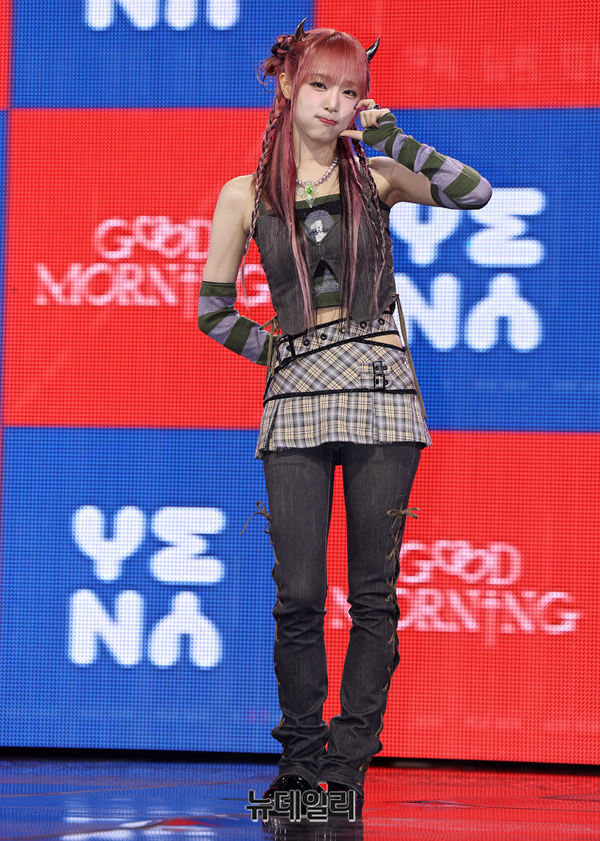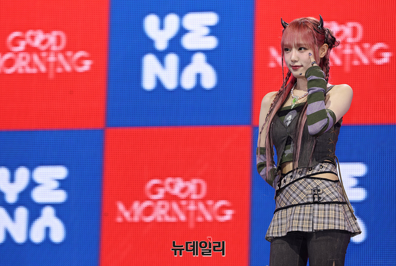 가수 YENA(최예나)가 15일 오후 서울 광진구 예스24 라이브홀에서 열린 3번째 미니앨범 '굿모닝' 쇼케이스에서 포즈를 취하고 있다.