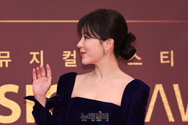 배우 정선아가 15일 오후 서울 동대문구 경희대학교 평화의전당에서 열린 '제8회 한국뮤지컬어워즈' 레드카펫에서 포즈를 취하고 있다.