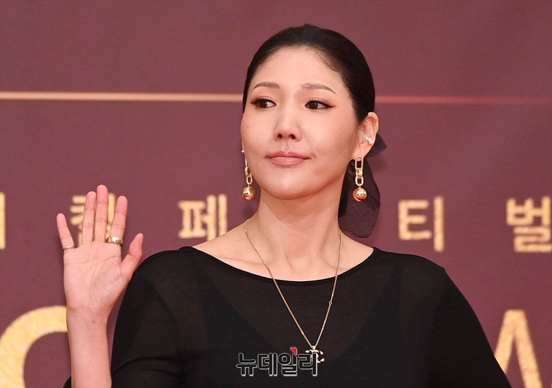 배우 장은아가 15일 오후 서울 동대문구 경희대학교 평화의전당에서 열린 '제8회 한국뮤지컬어워즈' 레드카펫에서 포즈를 취하고 있다.