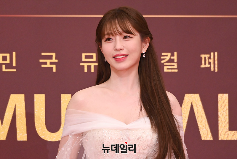 배우 송은혜가 15일 오후 서울 동대문구 경희대학교 평화의전당에서 열린 '제8회 한국뮤지컬어워즈' 레드카펫에서 포즈를 취하고 있다.
