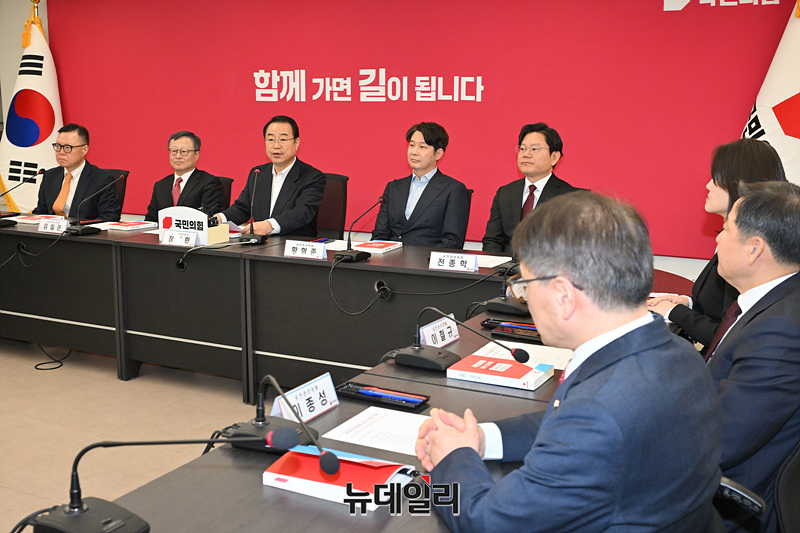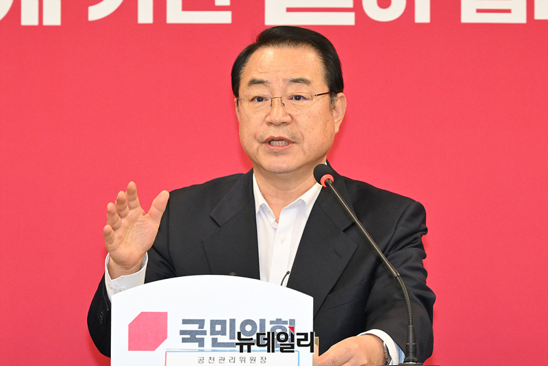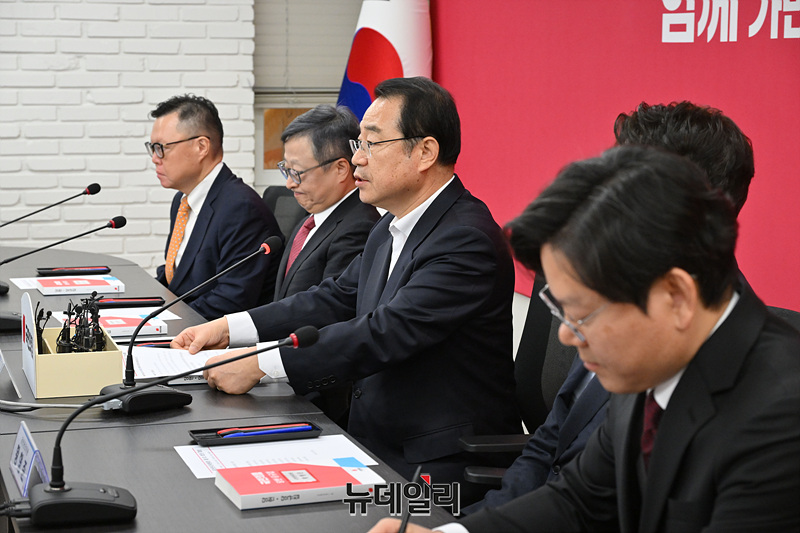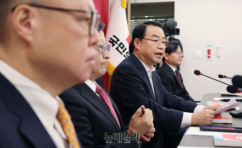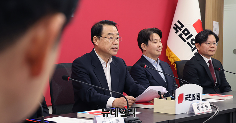 정영환 국민의힘 공천관리위원장이 16일 오후 서울 여의도 국민의힘 중앙당사에서 열린 공천관리위원회 1차 회의에서 발언하고 있다.
