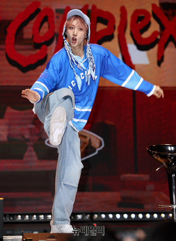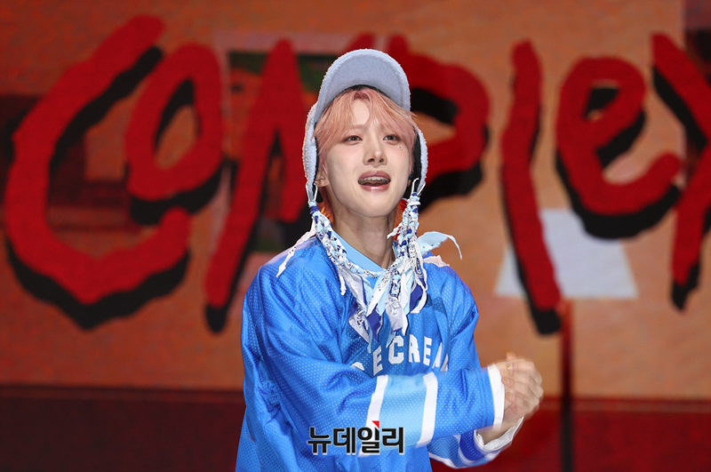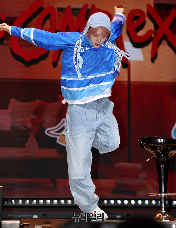 펜타곤 멤버 후이가 16일 오후 서울 광진구 예스24 라이브홀에서 열린 첫 번째 솔로 미니앨범 'WHU IS ME : Complex' 쇼케이스에서 챌린지 댄스를 선보이고 있다.