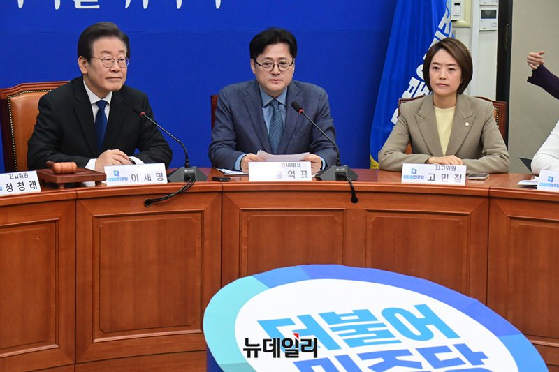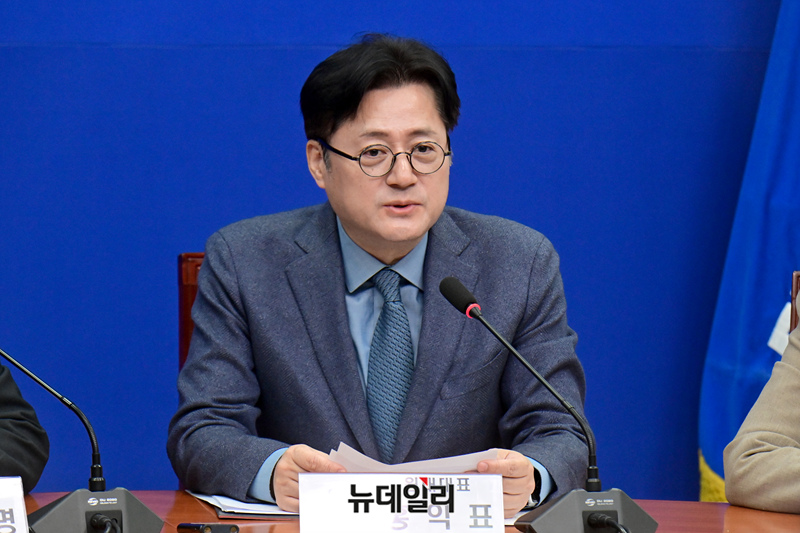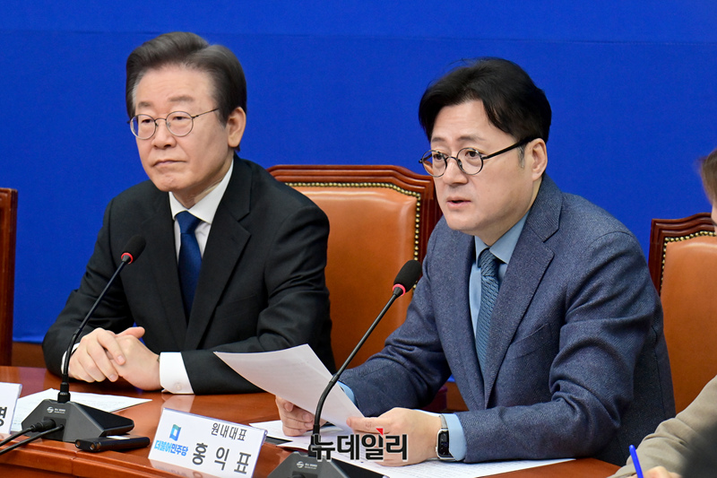 홍익표 더불어민주당 원내대표가 17일 오전 국회 최고위원회에 참석해 모두발언을 하고 있다.