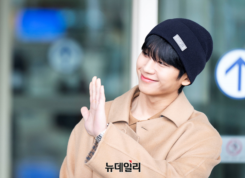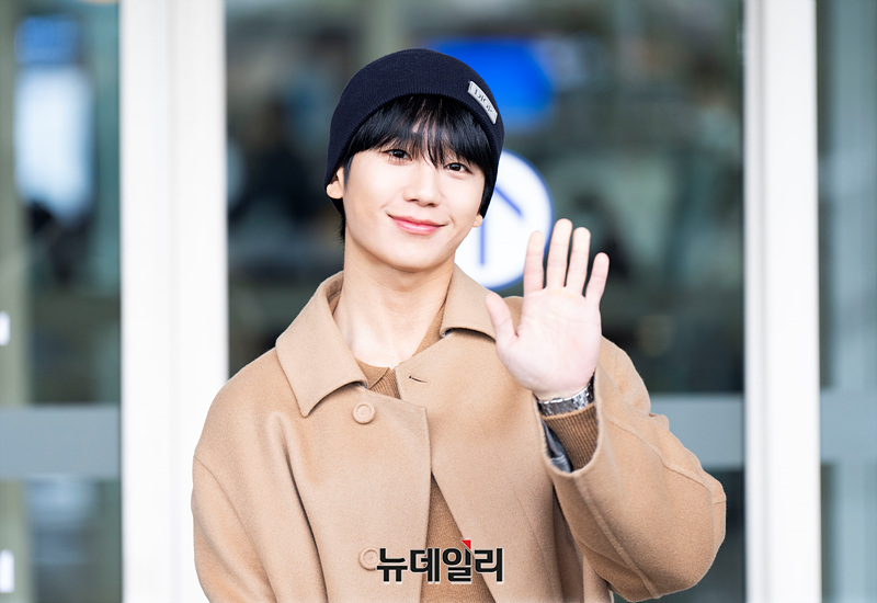 배우 정해인이 '디올 WINTER 24 컬렉션 쇼' 참석을 위해 17일 오전 인천국제공항에서 출국하고 있다. (인천=서성진 기자)