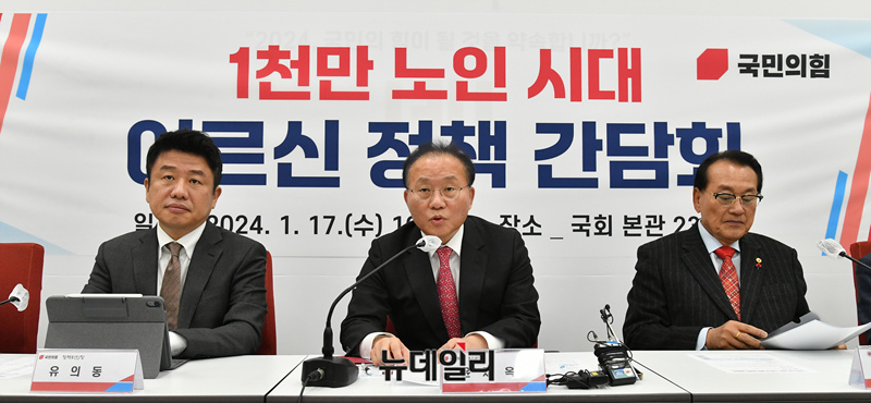 윤재옥 국민의힘 원내대표가 17일 국회에서 열린 '어르신 정책 간담회'에서 모두발언을 하고 있다.
