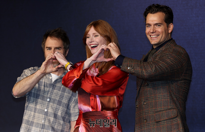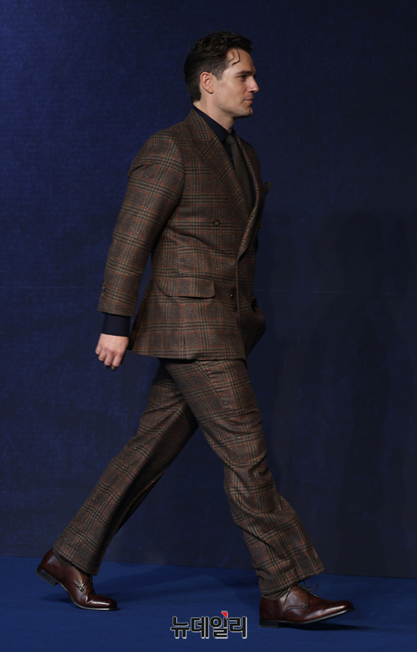 배우 헨리 카빌이 18일 오전 서울 종로구 포시즌스 호텔에서 열린 영화 '아가일' 내한 기자간담회에서 포즈를 취하고 있다.