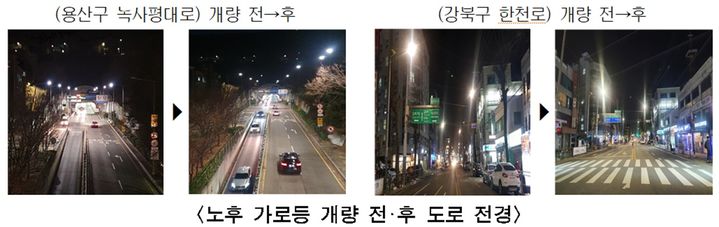 내년까지 서울 시내 가로등이 모두 LED 조명으로 바뀐다. 단색 조명인 원효대교와 가양대교도 LED를 입는다.서울시는 올해 총 215억 원의 예산을 들여 노후 가로등을 LED 조명으로 교체하는 등의 도로 조명시설 개선사업에 들어간다고 22일 밝혔다.대상은 일반 시도(市道), 자동차전용도로, 교량과 고가차도 등의 15년이 넘은 노후 가로등과 조명시설이다. 올해 안에 가로등 3475등과 가로등주 2185본, 전선로 65㎞, 분전함 303면을 교체할 계획이다.이에 따라 서울 시내 노후 가로등은 내년까지 100% LED 조명으로 바뀐다.서울시는 2013년부터 전기에너지 절약과 온실가스 배출 저감을 위해 나트륨·메탈 광원 등이 적용된 가로등을 LED로 바꾸고 있다.지난해 말까지 시도에 설치된 가로등 14만2822등 가운데 13만1826등(92.3%)을 LED로 교체해 전기요금 약 54억 원과 온실가스 2만4652tCO2(이산화탄소톤)을 줄이는 데 성공했다.강남구 일대에는 가로등에 야간 밝기를 자동조절하는 '디밍(Dimming)'이 설치된다. 디밍 시스템은 가로등 밝기를 1~100%까지 1% 단위로 제어할 수 있는 원격제어장치다. 연간 20~30%의 전력량을 추가 절감할 수 있는 효과가 있다.서울시는 2014년부터 해당 장치를 가로등에 설치하고 있으며, 현재 중구 무교로 등 14개 노선 가로등 3977본에서 디밍이 작동하고 있다.이러한 조명 개선사업을 통해 서울시는 전력량 연간 1413MWh(메가와트시)를 아낄 수 있을 것으로 기대하고 있다. 전기요금으로 환산하면 1억5900만 원이다. 온실가스 625.9tCO2(이산화탄소톤)을 저감하는 수치다.또한 서울시는 수동으로 가로등을 끄고 켜던 방식에서 벗어나 앞으로는 날씨와 교통정보를 연계한 지능형 시스템으로 가로등을 운영해 에너지를 아낄 방침이다. 가로등 고장을 실시간으로 확인할 수 있는 '실시간 원격점검 시스템'도 갖출 예정이다.아울러 도시정보를 수집·제공하고 시민 안전도 높이기 위해 가로등에 CCTV와 비상벨, 무선 인터넷(WIFI)과 함께 사물인터넷을 기반으로 소음·미세먼지 등 17종의 도시환경 정보를 수집하는 '도시데이터센서(S-DoT)'도 통합 설치하기로 했다.현재 시는 가로등에 범죄예방, 주·정차 관리 등을 위한 CCTV 133개소, 범죄 예방을 위한 비상벨 96개소, 와이파이 120개소, 미세먼지·조도 등을 측정하기 위한 사물인터넷(IoT) 환경센서 1087개소 등을 융합 설치해 운영 중이다.원효대교와 가양대교에도 LED를 입힌다. 두 교량의 조명시설은 2002년에 설치돼 노후했을 뿐만 아니라 LED 조명도 적용되지 않은 단색 조명이라 에너지 효율이 낮고 유지 관리가 어려워 이번에 개선하기로 했다.이 외에도 서울 시내 '야간 경관 축'을 고려해 서울시는 지역·노선별 가로등의 광원 색온도를 다르게 설치해 각 지점에 어울리는 색상과 밝기로 조성하고 있다. 도로 조명 색온도 기준에 따라 △광로·대로 4000~5000K △중로 3500~5000K △소로 3000~4000K △사대문 내 3000~3500K △한강변 2700~3000K로 구분했다.김성보 서울시 재난안전관리실장은 "야간 조명은 안전뿐만 아니라 도시의 매력을 좌우하는 중요한 요소인 만큼 시민 삶의 질과 관광경쟁력을 높이기 위해 조화롭게 개선해나가야 한다"며 "다양한 조명시설이 잘 어우러져 서울을 더 안전하고 아름답게 밝힐 수 있도록 체계적으로 개선해 나갈 것"이라고 말했다.