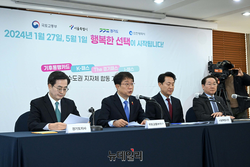 박상우 국토교통부 장관이 22일 오후 서울 중구 한국프레스센터에서 열린 기후동행카드·K-패스·The 경기패스·l-패스 등 대중교통 정기권에 관한 국토부·수도권 지자체 합동 기자설명회에서 발언하고 있다.