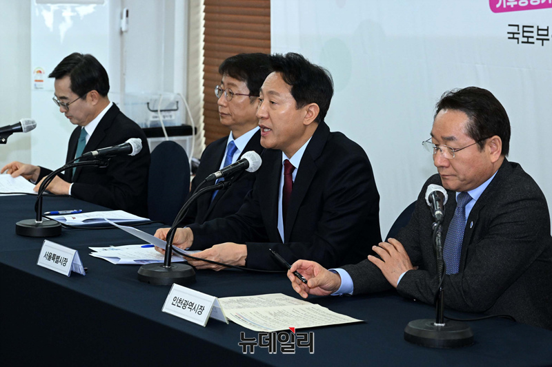 오세훈 서울특별시장이 22일 오후 서울 중구 한국프레스센터에서 열린 기후동행카드·K-패스·The 경기패스·l-패스 등 대중교통 정기권에 관한 국토부·수도권 지자체 합동 기자설명회에서 발언하고 있다.