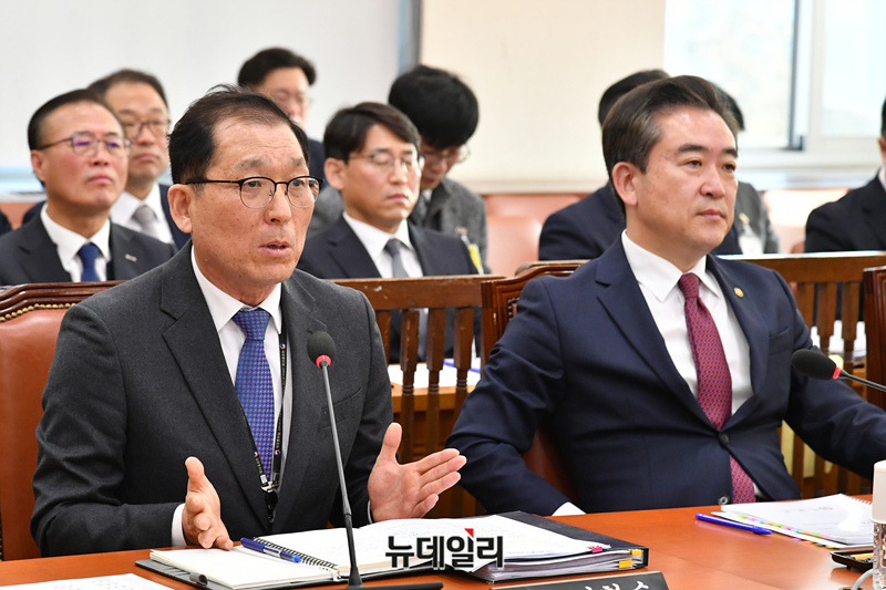 김혁수 대테러센터장이 25일 오전 국회에서 열린 행정안전위원회 전체회의에 증인으로 출석해 의원들의 질문에 답하고 있다.