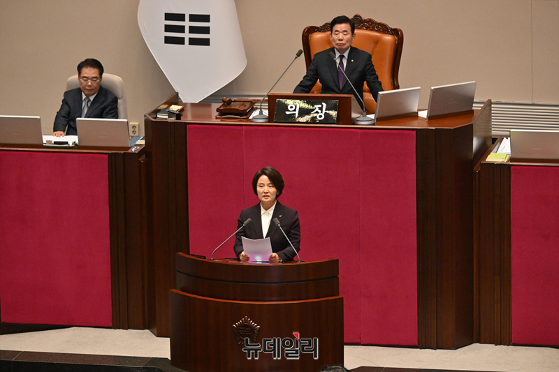 이은주 정의당 의원이 25일 국회에서 열린 본회의에서 의원직을 사퇴 신상발언을 하고 있다.