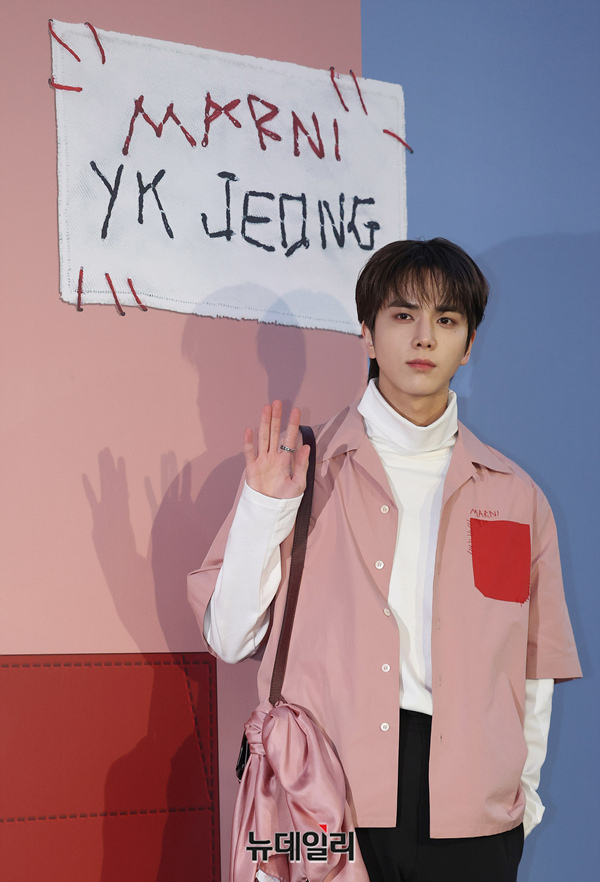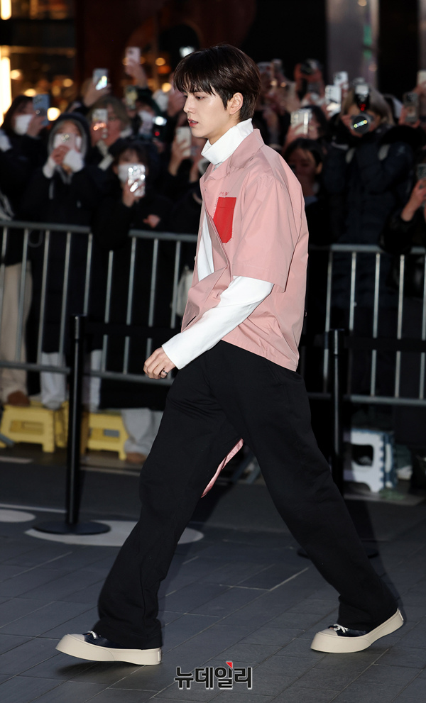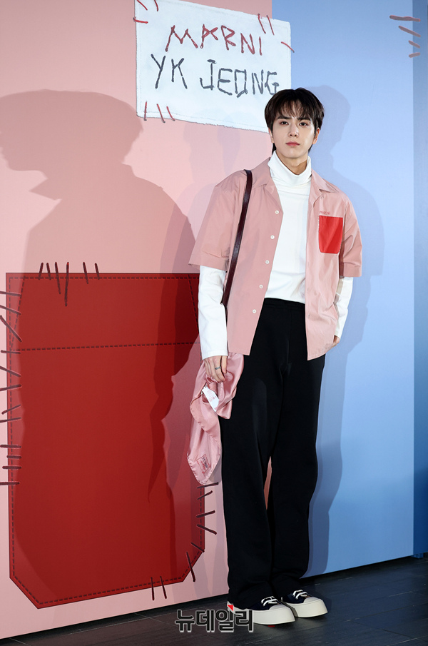 더보이즈 영훈이 25일 오후 서울 강남구 10꼬르소꼬모에서 열린 마르니와 정윤기 스타일리스트의 특별 캡슐 컬렉션 출시 행사에 입장하고 있다.
