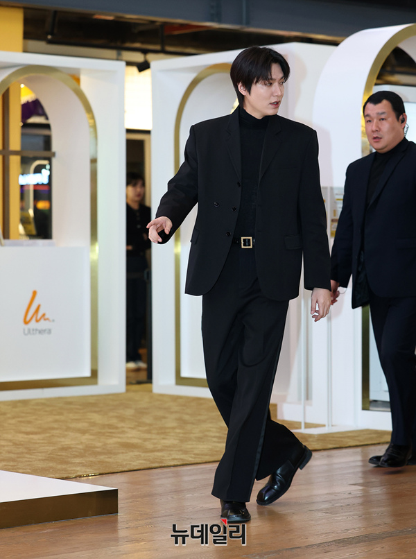 배우 이민호가 27일 오후 서울 강남구 메가박스 코엑스에서 열린 울쎄라 골드 스토리 데이에 입장하고 있다. 이민호는 울쎄라 아태지역 앰버서더로 활동하고 있다.