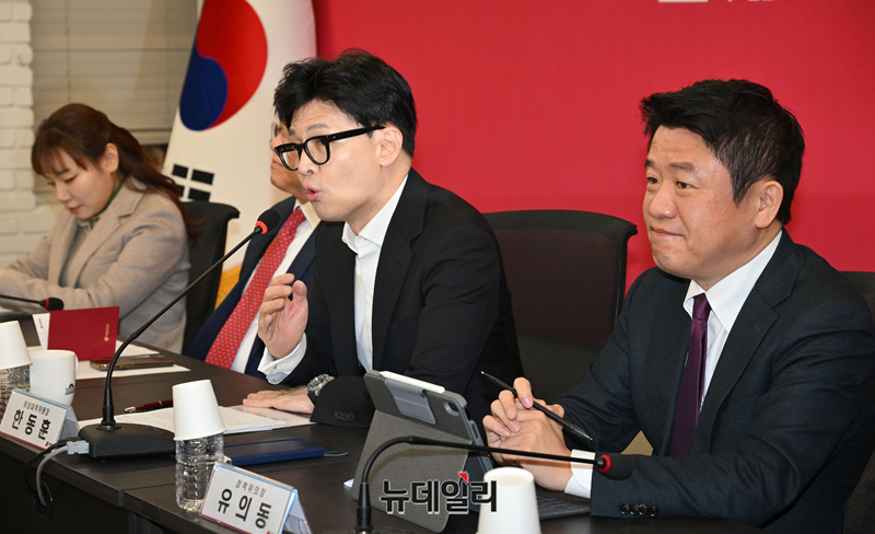 한동훈 국민의힘 비상대책위원장이 29일 오전 서울 여의도 국민의힘 중앙당사에서 열린 비상대책위원회의에서 모두발언을 하고 있다.