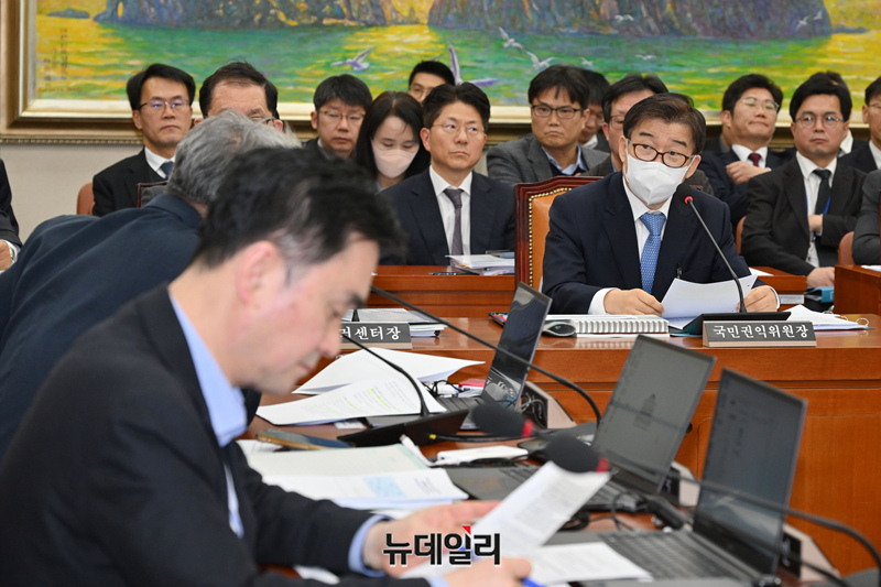 유철환 국민권익위원장이 29일 오전 국회에서 열린 국회 정무위원회 전체회의에서 질의에 답변하고 있다.