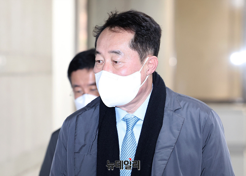 '더불어민주당 전당대회 돈봉투 살포' 의혹으로 기소된 강래구 전 한국수자원공사 상임감사위원이 31일 오후 서울 서초구 중앙지법에서 열린 1심 선고 공판에 출석하고 있다.