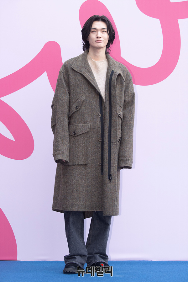 모델 최연규가 1일 오전 서울 중구 동대문디자인플라자에서 열린 '2024 F/W 서울패션위크' 포토월에서 포즈를 취하고 있다.