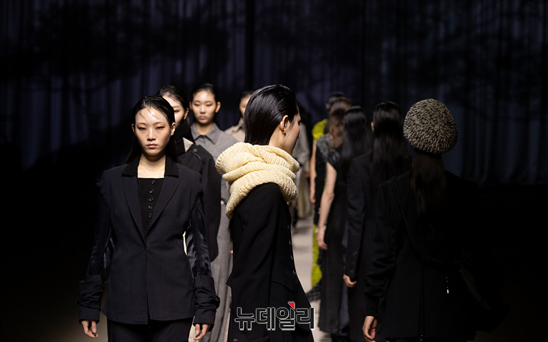 박소영 디자이너의 패션브랜드 '줄라이칼럼(JULYCOLUMN)' 런웨이가 1일 오후 서울 중구 동대문디자인플라자에서 열린 '2024 F/W 서울패션위크'에서 진행되고 있다.