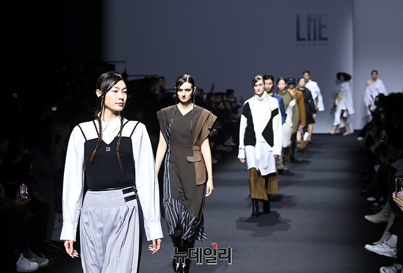 이청청 디자이너의 패션브랜드 '라이(LIE)' 런웨이가 2일 오후 서울 중구 동대문디자인플라자에서 열린 '2024 F/W 서울패션위크'에서 진행되고 있다.