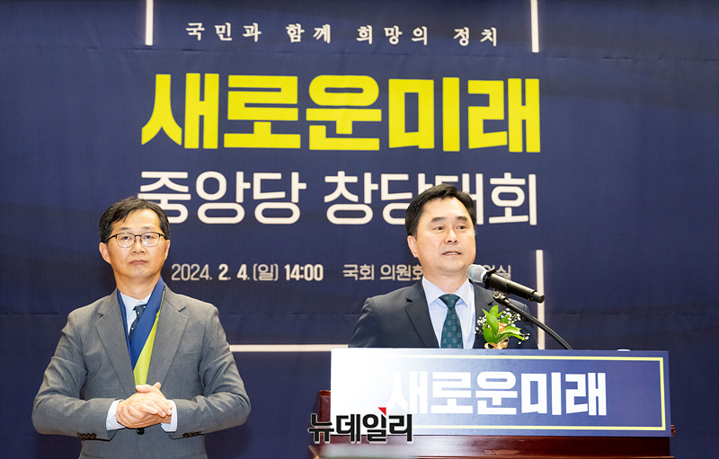 김종민 새로운미래 공동대표가 4일 오후 국회에서 열린 새로운미래 중앙당 창당대회에서 수락연설을 하고 있다.