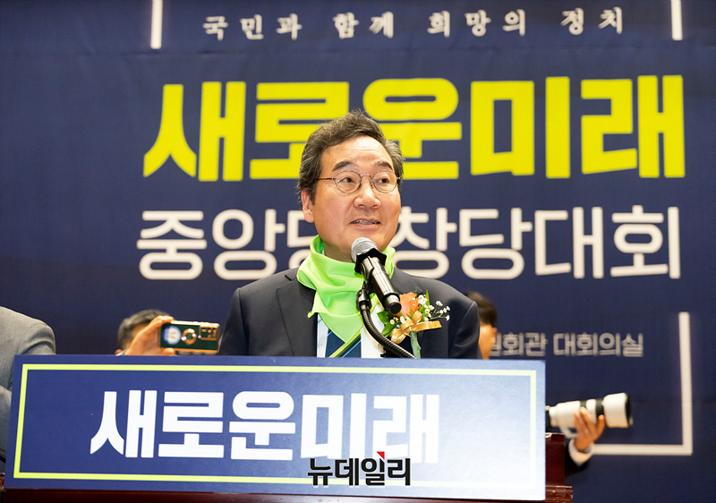 이낙연 새로운미래 공동대표가 4일 오후 국회에서 열린 새로운미래 중앙당 창당대회에서 수락연설을 하고 있다.