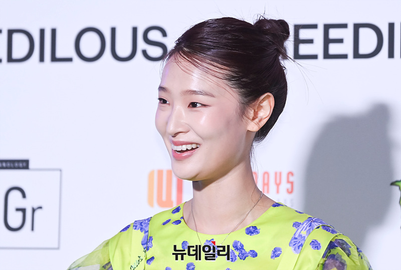 배우 백지혜가 5일 오후 서울 중구 동대문디자인플라자에서 열린 '2024 F/W 서울패션위크' 그리디어스 포토월에서 포즈를 취하고 있다.