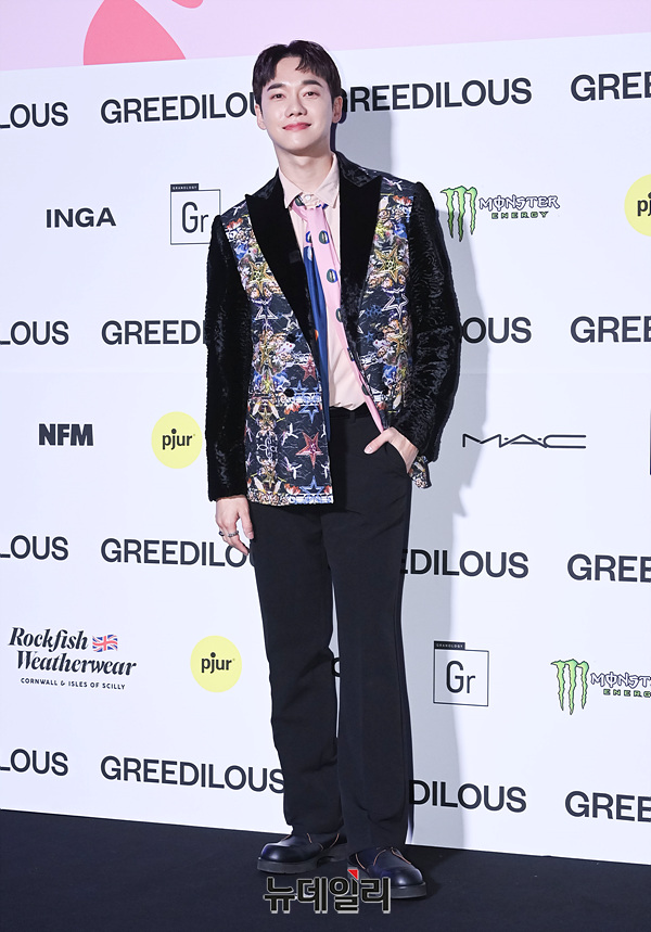 가수 이대원이 5일 오후 서울 중구 동대문디자인플라자에서 열린 '2024 F/W 서울패션위크' 그리디어스 포토월에서 포즈를 취하고 있다.