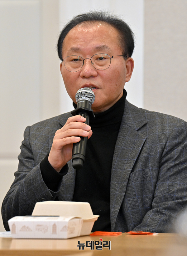 윤재옥 국민의힘 원내대표가 7일 국회에서 열린 출입기자단과 함께하는 브라운 백 미팅에서 인사말하고 있다. (사진=공동취재단)