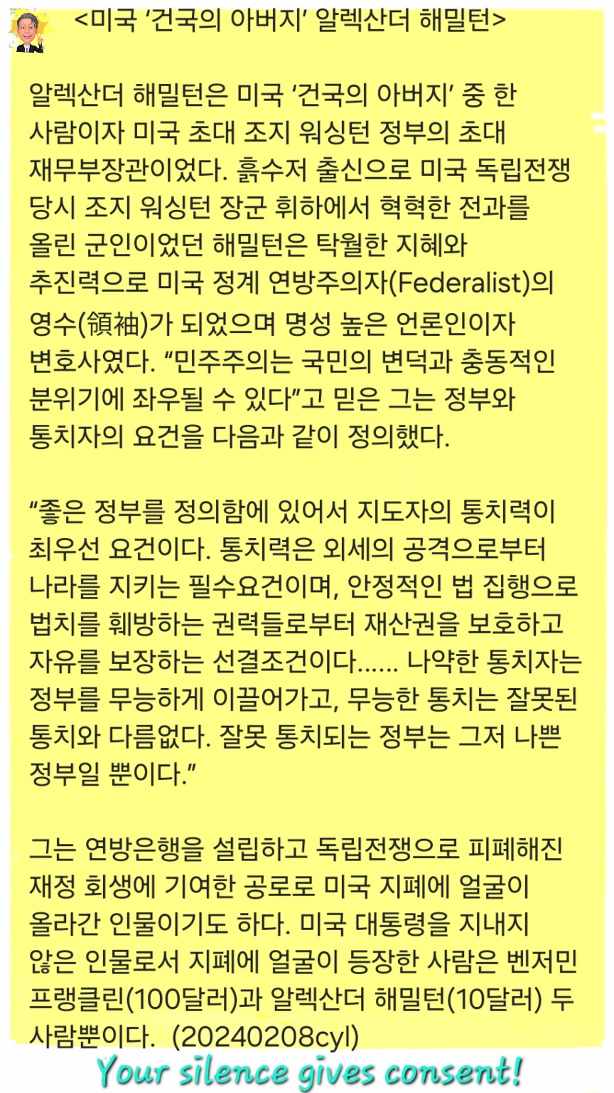 미국 건국 아버지 해밀튼은 중우정치 폐해 우려탄핵 광란과 문재인 통치 겪은 우리에 주는 교훈10불 지폐에 살아있는 230년전 미국정치인의 가르침 새겨보자