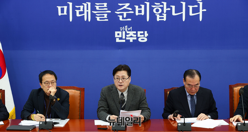 홍익표 더불어민주당 원내대표가 13일 오전 국회에서 열린 원내대책회의에서 모두발언을 하고 있다.이날 홍 원내대표는 "돈 봉투 주고받고 룸살롱 드나들고 쌍욕 잘하는 기준으로 보면 윤석열 대통령과 국민의힘 한동훈 비상대책위원장을 포함한 정치검사 일당들이 정치권 청산 대상 1순위"라고 한동훈 비대위원장과 윤 대통령을 비판했다.한 위원장은 전날 홍 원내대표가 "국민의힘이 주장하는 '86 청산론'은 독립운동가들을 폄하했던 친일파들의 논리"라고 말하자 "어느 독립운동가가 돈 봉투를 돌리고 룸살롱에서 쌍욕을 하나"라고 반박했다.