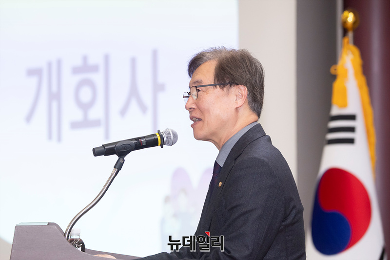 최재형 국민의힘 의원이 13일 오후 국회 의원회관에서 열린 '저출생 극복, 건강한 자연출산과 행복한 양육문화 만들기' 정책토론회에서 개회사를 하고 있다.