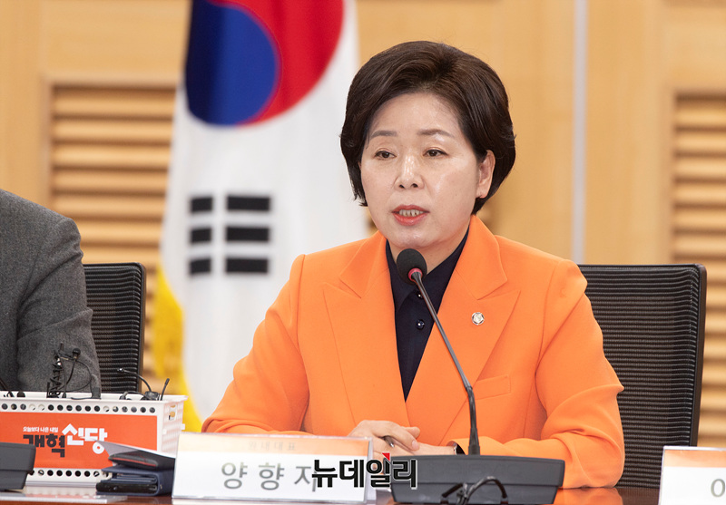 양향자 개혁신당 원내대표가 14일 오전 국회 의원회관에서 열린 최고위원회의에서 모두발언을 하고 있다.