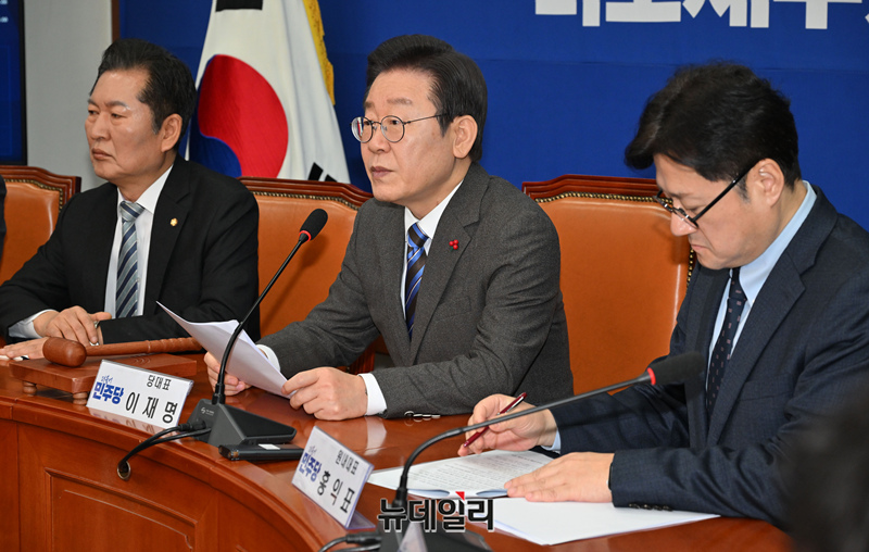 이재명 더불어민주당 대표가 14일 오전 국회에서 열린 최고위원회의에서 모두발언을 하고 있다.